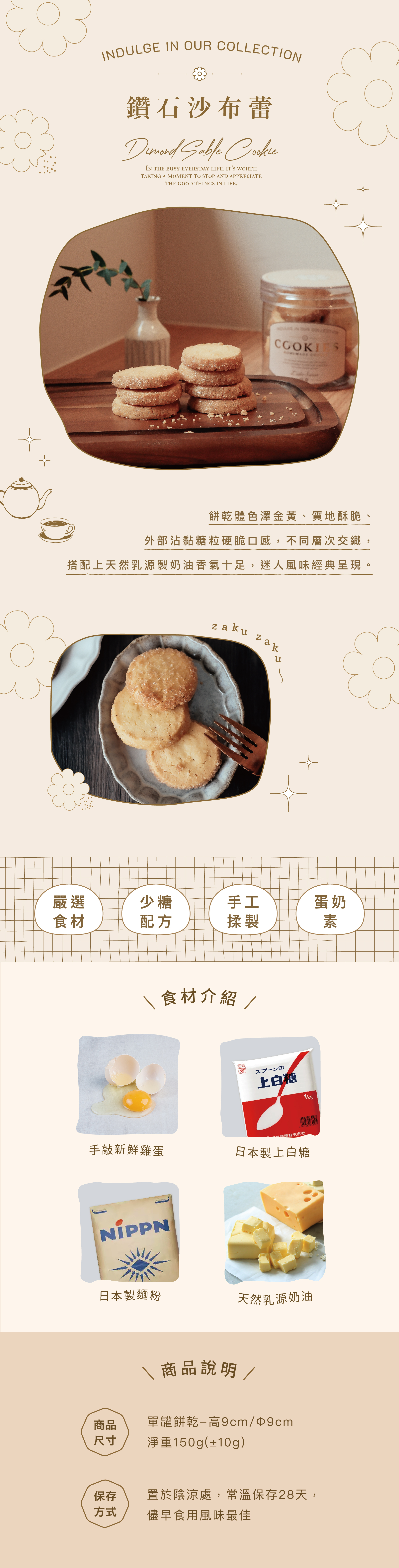 鑽石沙布蕾法式餅乾/含蛋.牛奶.小麥/少糖配方/蛋奶素可食/無酒精