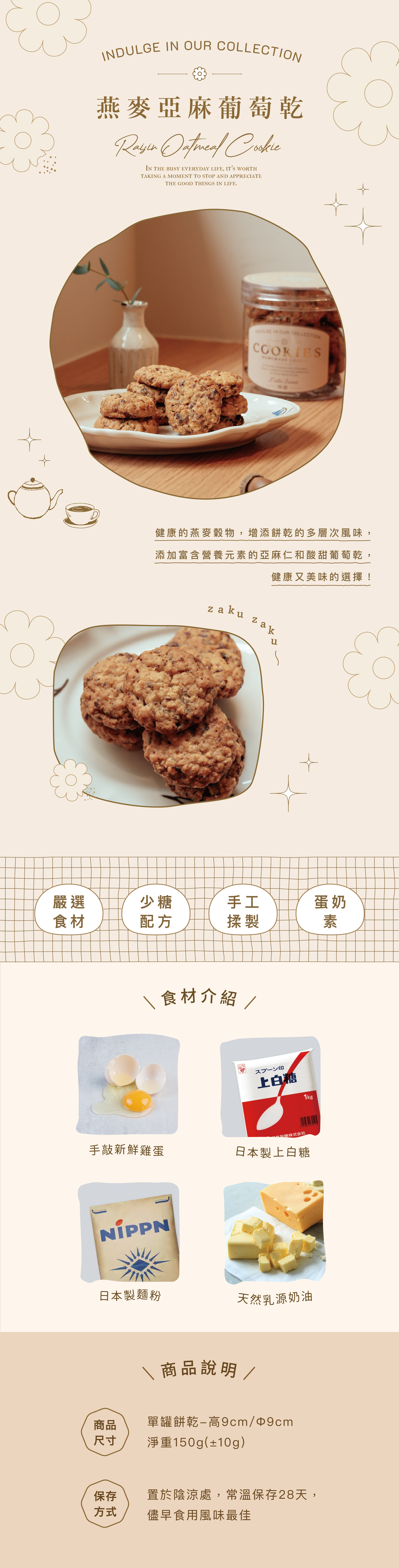 燕麥亞麻葡萄乾法式餅乾/含蛋.堅果.牛奶.小麥/少糖配方/蛋奶素可食/無酒精