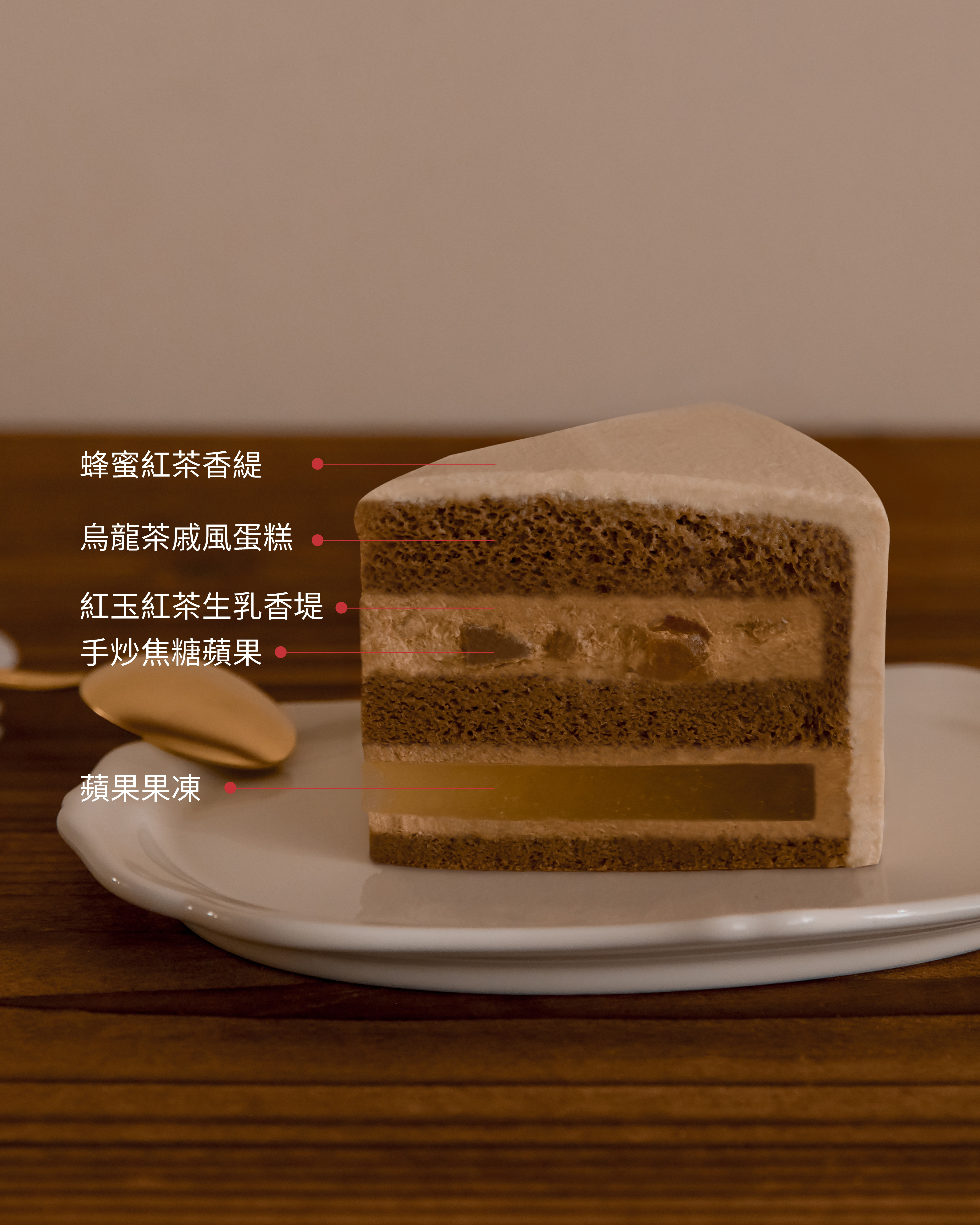 紅玉茶的溫潤茶香與蘋果清甜層層交織,細緻而不膩口。