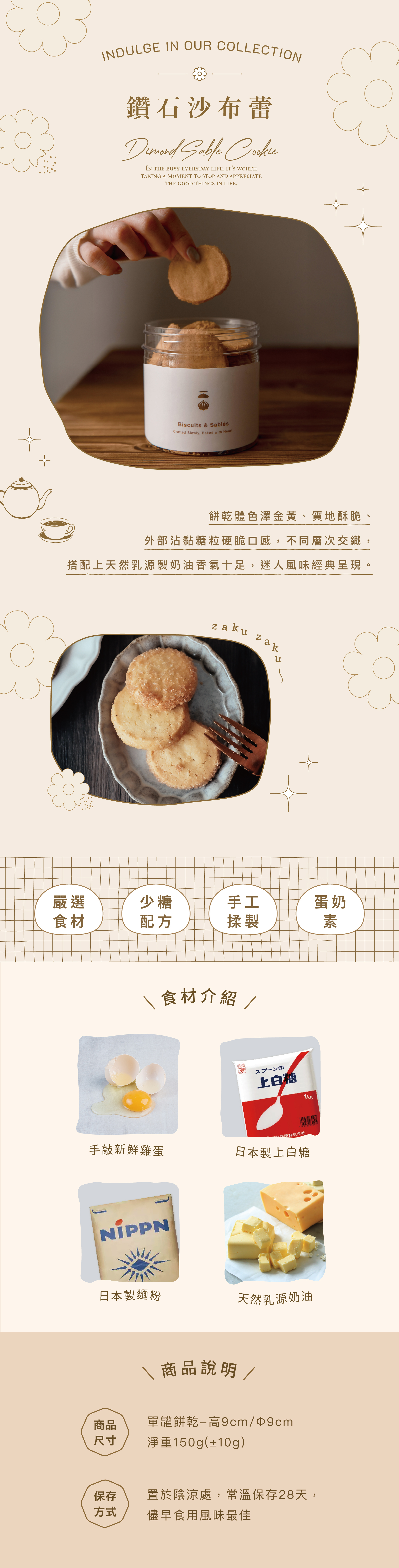 鑽石沙布蕾法式餅乾/含蛋.牛奶.小麥/少糖配方/蛋奶素可食/無酒精