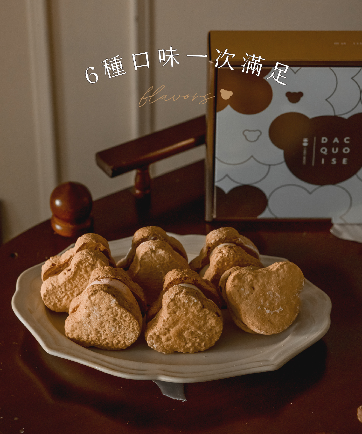 內含6種口味:開心果奶蓋、茶香伯爵、焙茶奶霜、可可歐蕾、百香奶酪、莓果慕斯