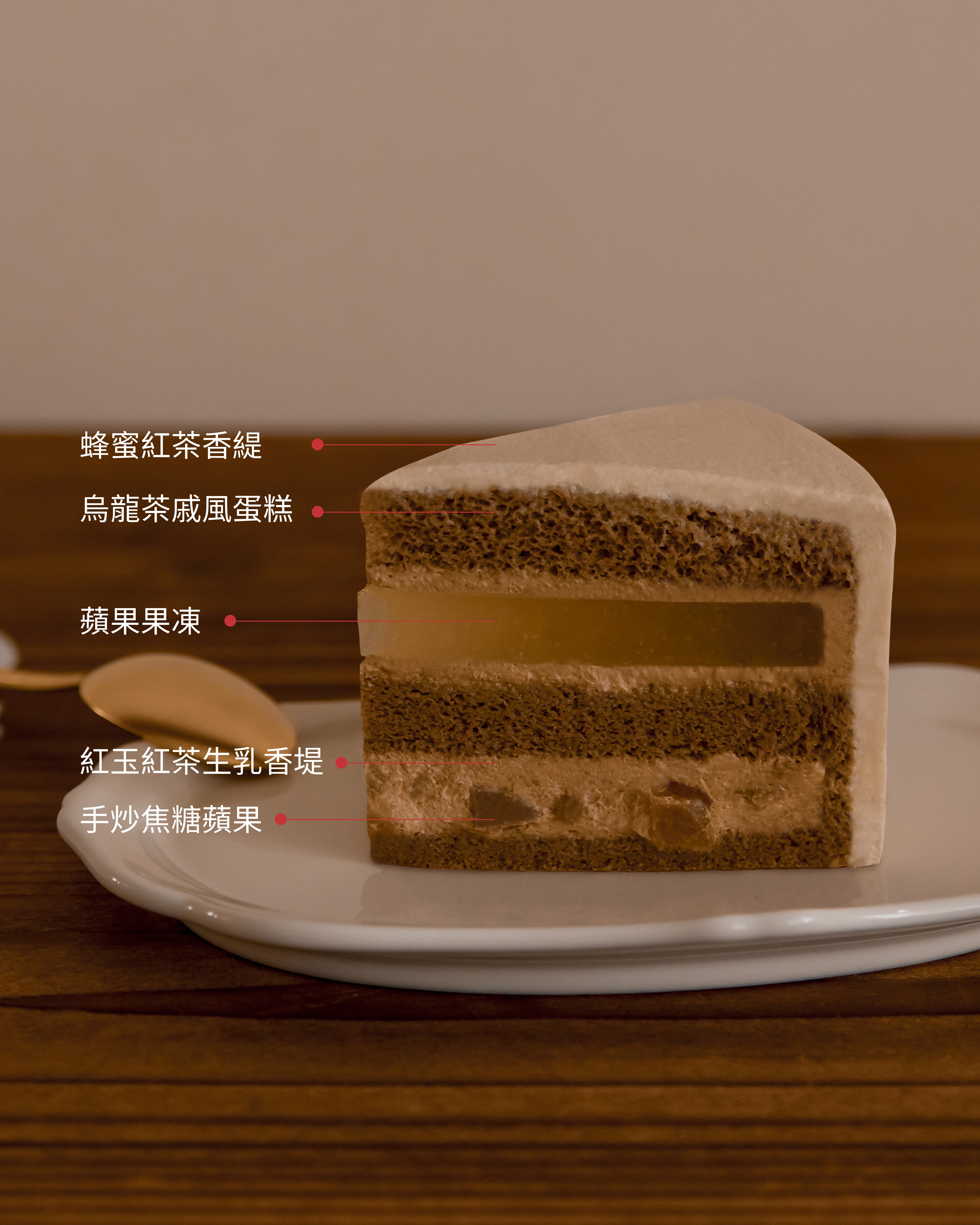 以台灣紅玉紅茶入味,堆疊出溫潤細緻的茶香戚風。