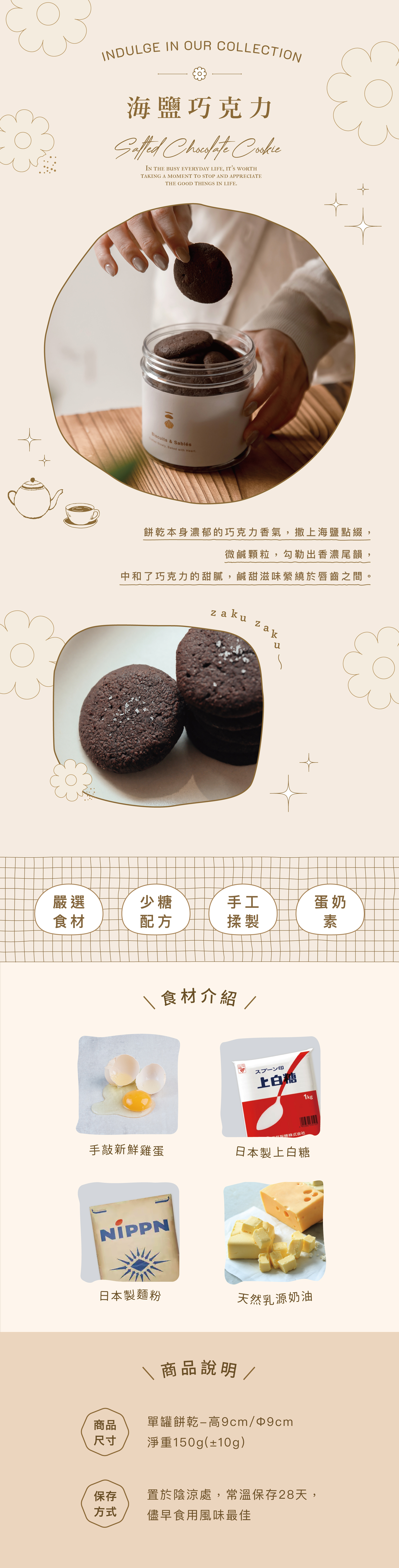 海鹽巧克力法式餅乾/含蛋.堅果.牛奶.小麥.巧克力/少糖配方/蛋奶素可食/含咖啡因/無酒精